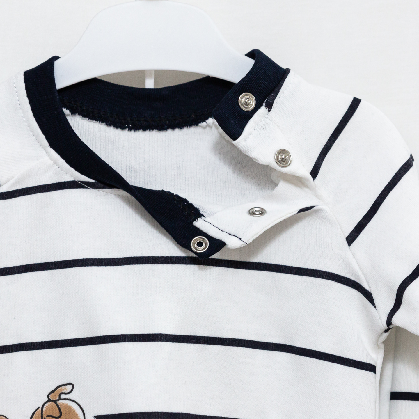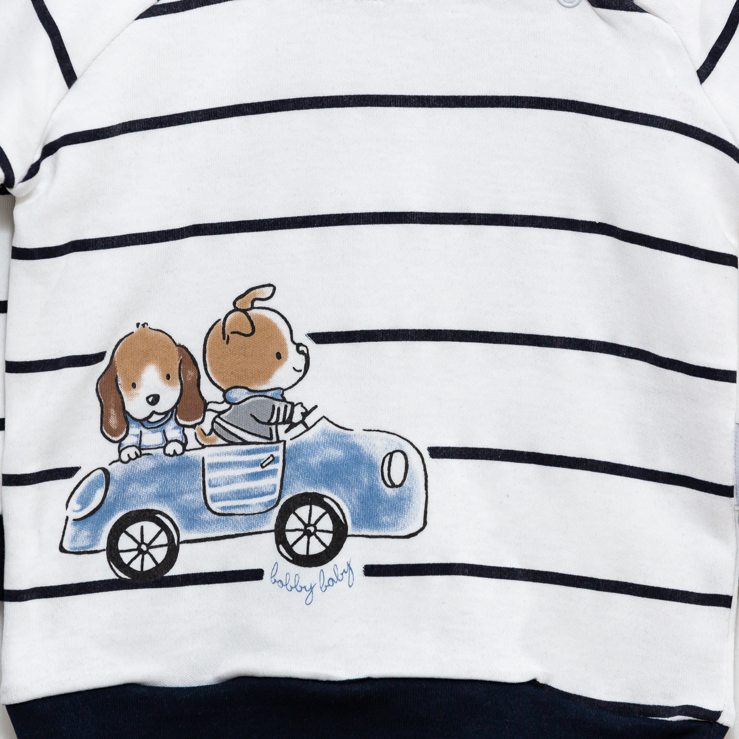 Set 2 piese bebe Bobby Baby format din: bluză cu mânecă lungă și închidere cu capse+pantaloni, material 100% bumbac.