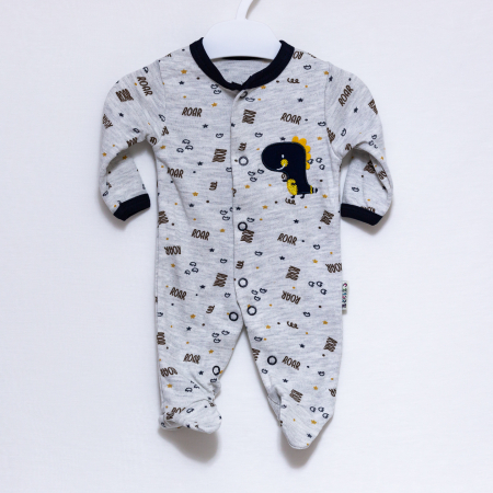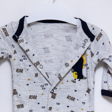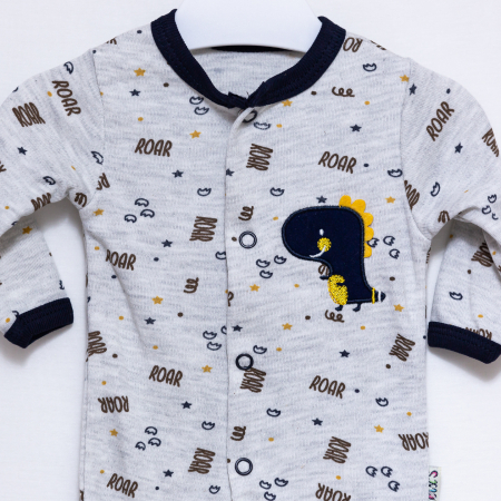 Salopetă bebe cu mânecă lungă Roar, închidere cu capse, material 100% bumbac.